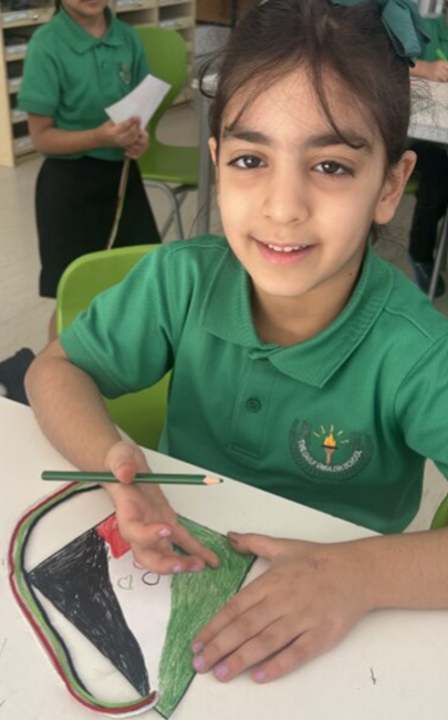 This week in Creative Arts, our EYFS children took part in a meaningful activity by decorating Palestinian flags. They explored colours and patterns while learning about the importance of kindness, hope, and unity. Through this creative task, the children expressed themselves while beginning to develop an early understanding of different cultures.