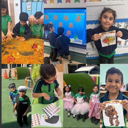 This week, we began our exciting new topic ‘Weather Wonders’. The children have been learning all about the season of Autumn and how the weather begins to change. We talked about how the leaves turn red, yellow, brown and how the air feels cooler and windier. The children enjoyed exploring our Autumn themed tuff tray, filled with coloured rice, leaves, and cinnamon sticks. They used their senses to describe what they could see, feel and smell. We also sang Autumn songs and listened to stories about falling leaves and woodland animals getting ready for the colder weather. In Maths, the children have been matching objects to numerals and developing their counting skills through practical activities. It has been a wonderful start to our new topic and the children have shown great curiosity and enthusiasm in their learning!