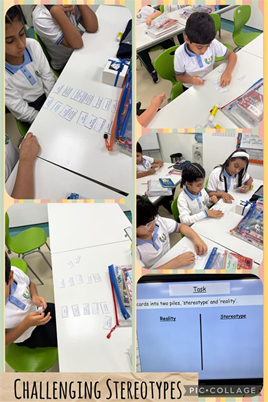 This week, in PSHE, we explored how to challenge stereotypes. Stereotype - a general idea about a group of people that may not be true. We began by sorting different cards, ‘stereotype’ and ‘real life’ into the correct piles. Then we discussed different ways to challenge stereotypes, we discovered, we had to be kind, include everyone and celebrate everyone's differences.