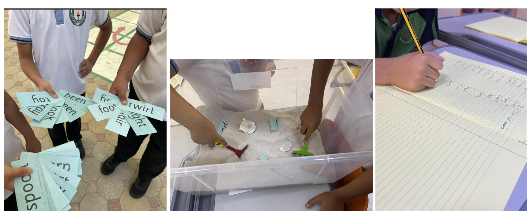 This week we have been consolidating our phonics knowledge by reviewing all the sounds we have learnt so far. We did this through reading, writing and using a range of different games. We have been on a word hunt, to find words that contain the sounds we have been learning. We looked for the phonics green words in the sand. Lastly, we did a word race, seeing who could reach the finish line first by reading words containing all the sounds we have learnt. All the children did really well, they have been showing great enthusiasm for their learning and shown that they have already learnt so much! They also demonstrated some great team work, working together in the games to find the words and great sportsmanship by cheering each other on in the word race.