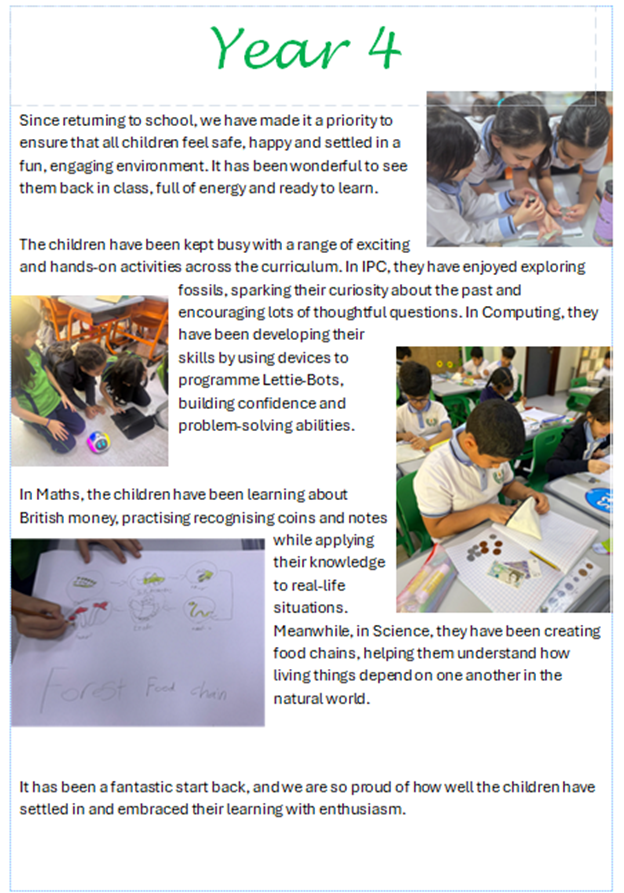 Dear Parents, It has been a positive and purposeful week across the Junior School, with students settling well into their learning and showing great focus and resilience following recent disruptions. In Year 3, pupils have been developing their understanding of money through a range of practical and engaging activities. From recognising coins and notes to adding, subtracting, and solving real-life problems, the children have shown great enthusiasm. A particular highlight has been the classroom “shop” activities, where pupils took on the roles of customers and shopkeepers. In Year 4, it has been wonderful to see children return to school full of energy, settling quickly into a safe, happy, and engaging environment. Pupils have been busy with a range of exciting, hands-on learning experiences across the curriculum. Year 5 have made a fantastic return to school life, immersing themselves in a variety of exciting topics. In Writing, they are exploring recounts using the Talk for Writing approach, while in Maths they are developing their understanding of decimals. Their IPC topic, Bold and the Brave, has sparked great interest as they learn about Ancient Rome and Greece, alongside their Science work on materials and their properties. In Year 6, we would like to recognise the outstanding resilience and commitment shown by our students during the recent period of remote learning. Since returning to school, they have settled back into routines well and are working hard to continue their progress. With their final term approaching, there is a strong focus on maintaining effort and preparing confidently for the transition to secondary school. Thank you, as always, for your continued support. Warm regards, Mr. Gary Head of Juniors |